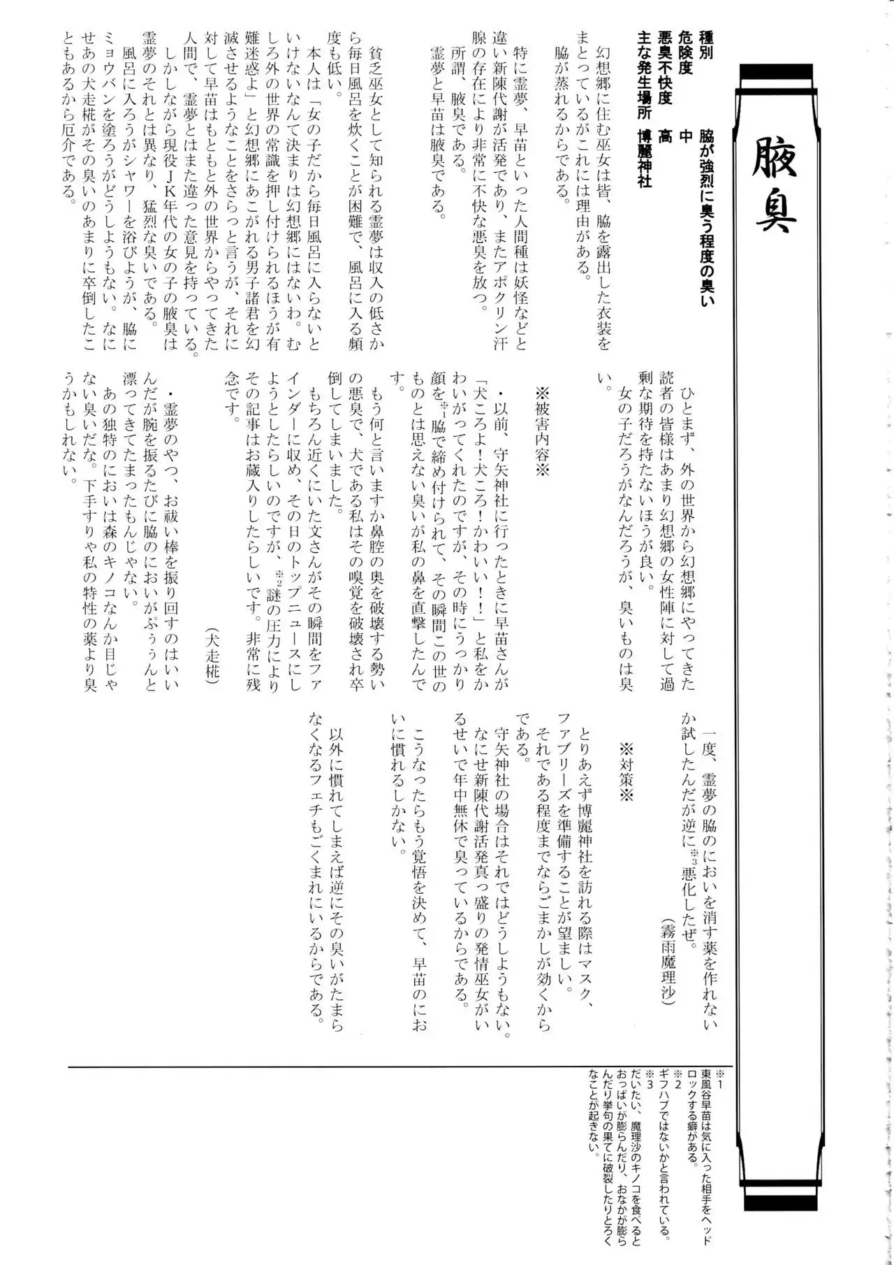 (Shuuki Reitaisai 5) [HORIC WORKS Shuppan Jigyoubu Shiodome project (Various)] Touhou Nioi Feti Goudoushi ~Shuuki Reitaisai~ SMELL BREAK (Touhou Project) [Incomplete]