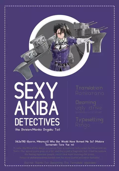 (C87) [ALSeTRO (Gyarin, Mikanuji)] Midare Somenishi Tare Yue ni | Who Else Would Have Ruined Me So (Kantai Collection -KanColle-) [English] [Sexy Akiba Detectives]